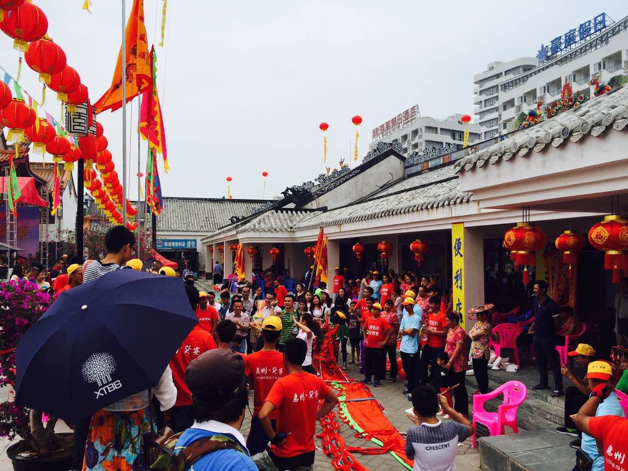 在經(jīng)過了四小時的車程后,于中午時分到達(dá)了素有中國的馬爾代夫之稱的惠東巽寮灣。一行人一下車便開始了第一項拓展挑戰(zhàn)——人員分成三組,分別找到天后宮的正門及概念銷售手中的礦泉水,且銷售出去后水還在手中。巽寮灣的景點之一的天后宮在這天正好遇上一年一度的媽祖誕辰,各地的旅游團和朝拜人士都從五湖四海聚擁而至,人山人海的場面相當(dāng)熱鬧。