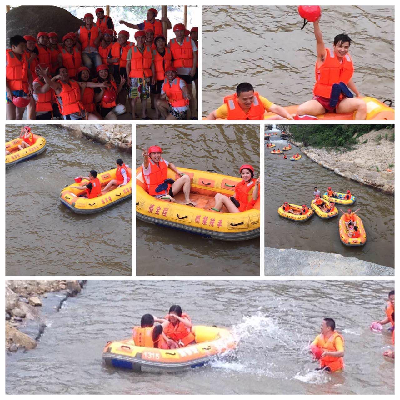 中午大家在一起享受了一番當(dāng)?shù)孛朗持螅?qū)車來到了巽寮灣龍騰峽漂流,開始了我們的第二項挑戰(zhàn)。盡情享受漂流給心靈帶來歡愉與刺激的同時,享受大自然的鬼斧神工之妙!平時一向溫和的李總和林總,也童真了回,孩子氣地直接從漂流艇上跳入水中,和大伙一起玩起了潑水大戰(zhàn),更加拉進(jìn)了彼此間的距離感。